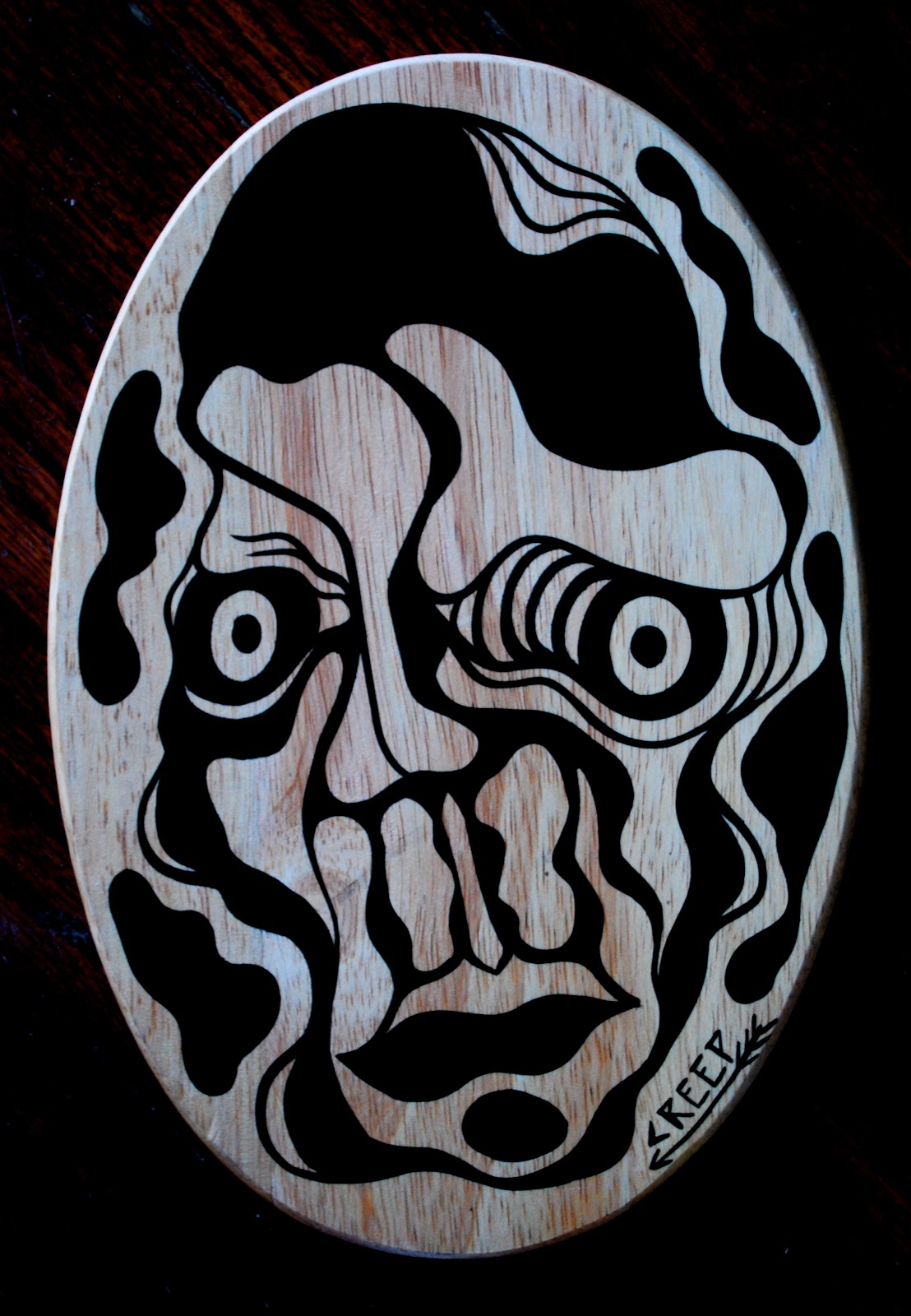 This one is just a little funky, just how I like it. Acrylic and guache on neon paper.